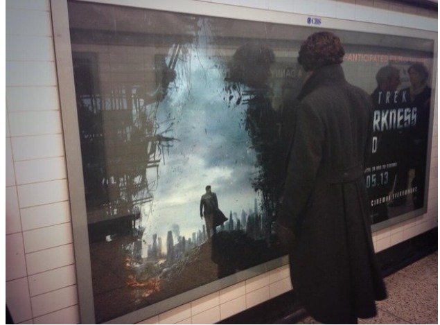 Benedict in the subway on the set of Sherlock