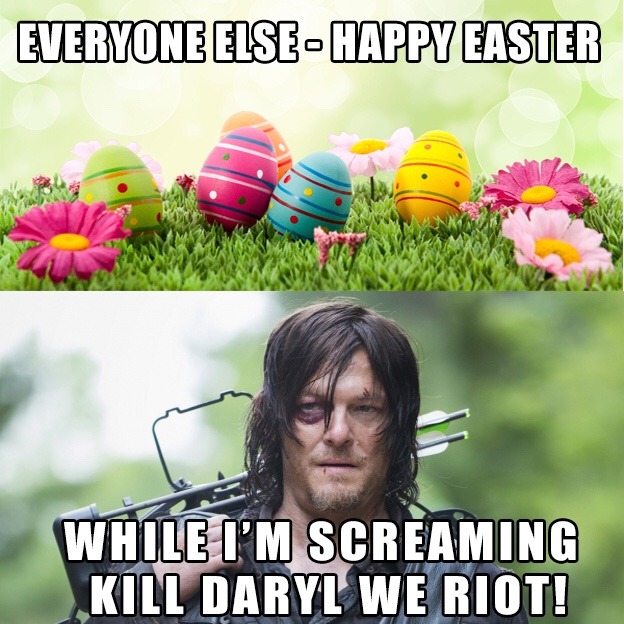 Mar 27, 2016 | tumblr away with me Everyone else “Happy Easter” while I’m screaming “Kill Daryl we riot!” 😁 Lol Happy Easter Y’all!! 🐰🐣