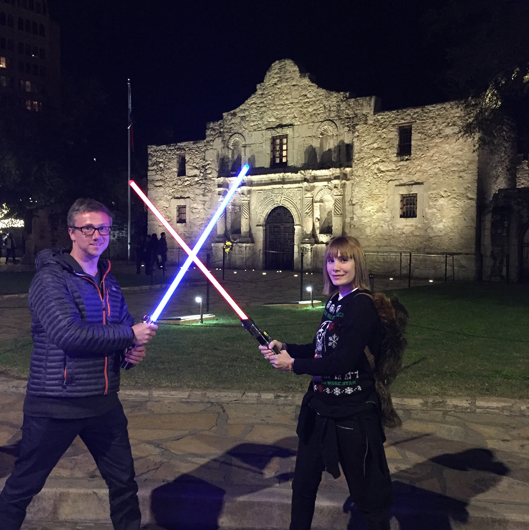 Dec 11, 2017 | tumblr away with me #thealamo and #lightsaber 🤓 #wookieewalk #starwars #christmas #sanantonio #texas @sawookieewalk (at The Alamo)
